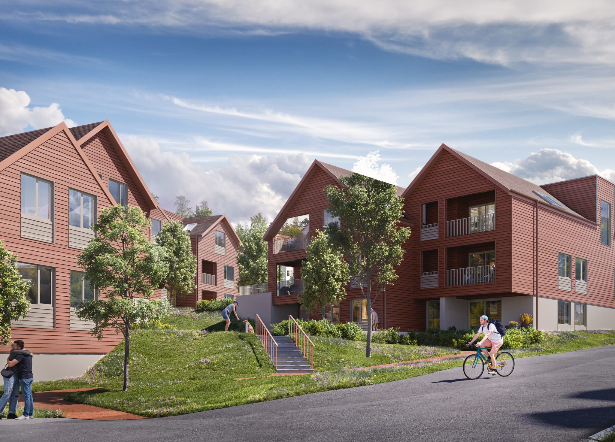 "Dyrhaugen er utviklet med ambisjon om å skape et boligmiljø som balanserer det private og det kollektive, det moderne og stedstilpassede – og som legger til rette for et hverdagsliv i samspill med naturen og nabolaget"